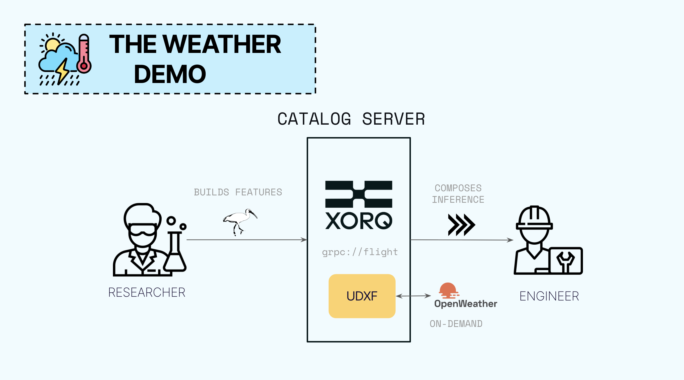 python weather_flight.py serve_features # 1. expose UDXF expr on Catalog Server